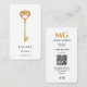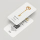 Cartão de visita de chave branca Dourada de hipoteca imobiliária mínima com código QR. Saia no mercado imobiliário lotado com este cartão de visita elegante que apresenta um design de chave dourada vintage e um código QR que liga diretamente ao seu website ou às listas de propriedades. Como consultor de agentes imobiliários, você sabe que a chave para o sucesso é fazer uma impressão duradoura com clientes potenciais. Este cartão de visita único faz isso, transmitindo um senso de conhecimento e sofisticação que o diferencia da competição.
