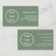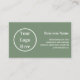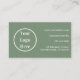 Este é um design de negócios moderno, simples, sábio, verde e branco. Este design mínimo está em verde-senso com tipografia branca. O design de modelo está configurado para que você adicione facilmente suas informações comerciais e detalhes de contato. Ele tem espaço para você adicionar seu logotipo, nome comercial e informações comerciais na frente. No verso, há espaço para você adicionar suas informações de contato de negócios, como site, informações de mídia social, número de telefone e endereço. É ideal para um cartão de visita profissional, mínimo, para fornecer aos seus clientes e contatos comerciais. Para personalizar, basta adicionar seu logotipo e informações comerciais usando a caixa de texto personalizar. Para alterar a cor ou a fonte, dê uma olhada na ferramenta de edição de design. Para obter ajuda com a personalização, produtos correspondentes ou para um design personalizado, entre em contato comigo via chat zazzle ou email: ursuladawnmoon@gmail.com