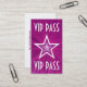 cartão de visita branco 'VIP PASS' de estrela rosa