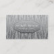 Um cartão de visita metálico de prata do olhar com uma listra da zebra no fundo.