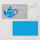 Um cartão de visita do estilo vintage bonito, adequado para um café - café móvel, café ou compro de chá especial. Este design de branco mostra uma ilustração de uma ilustração de uma aquarela de bule azul giro. A cor de fundo pode ser alterada de acordo com o seu gosto. Este cartão de visita é totalmente personalizável para incluir seus próprios detalhes pessoais.