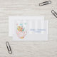 Cartões de visitas profissionais com ilustração química. Um bule cor-de-rosa com um pequeno coração cor-de-rosa no centro e um buquê de flores. Delicar borboletas coloridas com sabor a flecha. Colocado sobre uma cinza e fundo listrado branco.