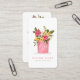 Design de cartão de visita, chic e moderno, que apresenta nosso belo pote de pedreiro rosa desenhado à mão, com nossos belos rosas de aquarela, flores amarelas e verde. Personalize com seu nome comercial e monograma. O verso apresenta informações de contato, nome comercial e informações e ícones das mídias sociais, juntamente com nosso pote de mason e flores cor-de-rosa. Todas as ilustrações são obras de arte originais desenhadas à mão pela Moodthology. Este cartão de visita giro giro e giro é perfeito para uma grande variedade de negócios como designer de interiores, influenciador, florista, butique, decoração doméstica, organizador profissional, ilustrador, freelancer, designer gráfico, babá, casamento e muito mais.