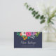 Cartão de visita floral azul escuro com um buquê desenhado mão da flor com as flores em cor-de-rosa, em branco, em roxo, e amarelo junto com as hortaliças e as bagas. Personalize com seu nome em um roteiro bonito da caligrafia.