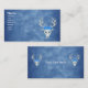Esta cartão de visita é feita em tons de azul com uma cabeça de cervo branca com traficantes brancos, cara misteriosa, e vestindo três rosas azuis. Personalize suas informações na frente e atrás com os modelos.