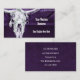 Cartões de visitas horizontais personalizados do crânio de vaca roxo branco-roxo do campo de textura verde-do-campo ocidental. Estilo de safra. O velho oeste selvagem russo inspirou design antigo. Design de animais legal, de moda fazenda. Personalize sua tipografia. Cor simples e texto no verso. Imagem copyright Marg Seregelyi Fotografia.