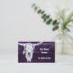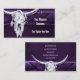 Cartões de visitas horizontais personalizados do crânio de vaca roxo, branco-roxo, de textura do grunge do campo. Vintage inspirou. O velho oeste selvagem russo inspirou design antigo. Design de animais legal, de moda fazenda. Personalize sua tipografia. Imagem copyright Marg Seregelyi Fotografia.