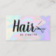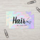 design de cartão de visita de cabeleireiro lindo, com textura holográfica colorida e fonte elegante de caligrafia.