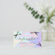 design de cartão de visita de cabeleireiro lindo, com textura holográfica colorida e fonte elegante de caligrafia.
