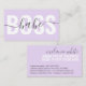 Um chic, moderno e chefe feminino citou a escrita da tipografia da caligrafia em cinzas e branco em uma lavanda púrpura macia editável. Cartão de visita perfeito para cabeleireiro e salão de beleza, adicione seus detalhes e mídias sociais.
