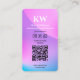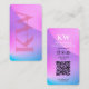 Cartão de visita elegante e moderno desenhado para cabeleireiros e maquiadores. O lado frontal oferece espaço para seu nome personalizado, enquanto o verso inclui espaço para links de mídia social (WhatsApp, Instagram, Facebook), um código QR verificável e seu número de telefone. Perfeito para criar uma imagem de na moda e marca profissional.