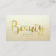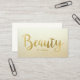 Cartões de visitas elegantes e bonito salões de beleza com um design de tipografia de folha de ouro luxuoso e falso que diz Bela sobre fundo de gradiente de ouro. Altere a cor de fundo e a cor do texto no verso para uma aparência personalizada. Projetado com cosmetólogos, salões de beleza e maquiadores em mente.