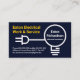 Um cobrir azul escuro apresenta um plugue criativo e um design de fiação elétrica de lâmpada. Dentro a lâmpada está no seu nome prestigiado e no título do trabalho. Na parte superior do cartão está o nome comercial em amarelo com os detalhes de contato próximos à base. No verso, no topo, há um logotipo de fiação em casa com letra dourada que você pode usar, seguido do nome da empresa e seus detalhes de contato. Um cartão criativo de excelente para os eletricistas usarem. #eletriccian #electricalservice #electricalcontratante #eletroeletroreparador #eletroicalengenheiro #bulb #electricpower #electricalwalling #plug #zazzlemade