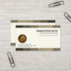 No verso, o mesmo tema de design é usado com o logotipo dourado no topo, seguido do seu nome prestigiado e dos contatos.