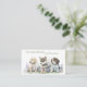 Um cartão de visita de serviços de assistência a cães. Perfeito para um andador de cães, babá de cães ou creche de cães. Num fundo branco, as imagens em aquarelas de três cachorros-cachorrinhos, incluindo um beagle, rouco e labrador, são cercadas por bonito flores roxas. Personalize adicionando seus negócios e detalhes de contato à frente e atrás.
