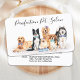 Mostre seu negócio de aliciamento de cães com esses cartões de visitas elegantes e modernos de caça de raças design e acessórios. Estes cartões de visitas de estimação apresentam Cães d'água, recuperador de ouros, labrador amarelo, collie de borda, beagle, malamute de rouco e um pomeraniano bonito, todos vestidos de arcos e flores azuis, teais e roxas. Personalize esses cartões de visitas do grupo de cães com o nome do proprietário da empresa, o título/nome da empresa e todos os detalhes do contato. Esses cartões de visitas de estimação são perfeitos para caminhantes de cães, aliciamento de cachorros, assento de animais de estimação, babás de animais de estimação e todos os negócios relacionados a cuidados de estimação''. Cartão de visita é de dois lados. COPYRIGHT © 2020 Judy Burrows, Black Dog Art - Todos Os Direitos Reservados. Cães Adoráveis Pet Sitter Elegant Dog Groomer Cartão de visita
