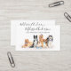 Mostre o seu negócio com esses cartões de visitas elegantes e modernos de caça de raças design e acessórios. Estes cartões de visitas de estimação apresentam Cães d'água, recuperador de ouros, labrador amarelo, collie de borda, beagle, malamute de rouco e um pomeraniano bonito, todos vestidos de arcos e flores azuis, teais e roxas. Personalize esses cartões de visitas do grupo de cães com o nome do proprietário da empresa, o título/nome da empresa e todos os detalhes do contato. Esses cartões de visitas são perfeitos para caminhoneiros, treinadores de cães, aliciamento de cães, assento de animais de estimação, babás de estimação e todos os negócios relacionados a cuidados de estimação''. Cartão de visita é de dois lados. COPYRIGHT © 2020 Judy Burrows, Black Dog Art - Todos Os Direitos Reservados. Cães Aquarelas Cães Pet Care Cães Formador Cartão de visita