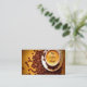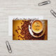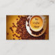 Este cartão de visita caracteriza uma imagem digital aumentada de um copo de café cercado por feijões de café. Todo o texto pode ser personalizado como necessário.