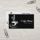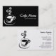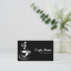 Um modelo de cartão de negócios com um atraente motif de café. Dados da empresa na frente, com nome e contatos no verso com uma repetição do motivo. Nesta versão, o motivo na frente é branco em preto ou escuro. O motivo no verso de preto a branco ou um tom claro. Este cartão também pode ser personalizado de muitas maneiras.