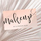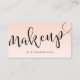 Cartão de visita de maquiagem minimalista elegante, que apresenta seu nome e texto de maquiagem em uma moderna letra manuscrita de script, fundo cor-de-rosa verde gradiente e informações de contato no verso.