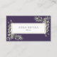 Um elegante modelo de cartão de negócios personalizado profissional que apresenta folhagem botânica de cor aquática verde em fundo roxo. Um design de chic e profissional que projeta uma imagem profissional confiante. Projetado por Thisnotme©