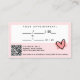 Mantenha seus clientes voltando com cartões personalizados de compromisso gravados. Doce design minimalista perfeito para fotógrafos de recém-nascidos, crianças, famílias, e muito mais! Lindos detalhes de coração cor-de-rosa com foco de câmera desenhado à mão e sotaques. Ideal para marcas de negócios de fotografia e marketing. ・ Personalize-o! Siga a modelo para adicionar seu próprio texto ou edite usando a ferramenta design para fazer alterações profundas em fontes, cores, layout etc. O código QR pode ser movido ou removido conforme necessário. ・ Procure a coleção de fotos Sweetart abaixo para todos os produtos coordenadores de marcas e marketing, incluindo etiquetas, cabeçote de letras e muito mais!