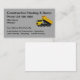 A construção de um caminhão de bombeamento puxando cartão de visita com a imagem de um caminhão de tração e remoção de lixo no fundo e a simples disposição de um fundo colorido de cinza você pode mudar para outra cor se quiser.