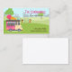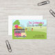 Um cartão de visita do divertimento para um negócio do caminhão do sorvete caracteriza um caminhão cor-de-rosa colorido com um cone do sorvete na parte superior em um ajuste do parque com as crianças excited no campo de jogos.