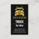 Um cobrir preto com uma fina linha de ouro perto do centro abriga duas legendas, ou seja "TRUCK" e "for hire" que forma o nome da sua empresa. ; Você pode mudar os comentários de legenda para eles para adequá-los às suas próprias necessidades de serviço. No topo está um logotipo de caminhão dourado que você pode usar seguido do seu nome prestigiado e dos detalhes de contato perto da base. No verso, no topo está o logotipo dourado seguido do seu nome prestigiado, dos contatos e de uma opção de slogan para divulgar seus serviços. Um cartão de excelente para todos usarem especialmente aqueles no setor de transporte. #logística #transporte #serviço de transporte #transporte #transporte transporte #transporte transporte e logística #movimentação #cadeia de fornecimento #frete #caminhoneiro #zazzlemade