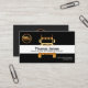 No verso, num cobrir preto, os detalhes estão no centro. No topo está o logotipo dourado seguido do seu nome prestigiado, dos seus dados de contato e da sua opção de slogan para divulgar seus serviços.