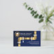 No verso, num cobrir azul, o seu nome prestigiado está no topo, seguido do logótipo dourado, dos dados de contato e de uma opção de slogan.
