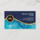 Um cartão profissional, criativo moderno. Simples e impressionante. O design é dividido em duas parcelas que é delimitado por uma tira da onda do ouro. As casas de seção azuis escuro cremosas superiores todos seus detalhes do cartão na parede direita. Na parte superior são seus nome e posição. Diretamente debaixo de estão os detalhes do contato. Ao longo da onda do ouro para a esquerda, há um logotipo do ícone do ouro do falso de um torneira de água. Finalmente, ao sul deste é seu tagline do slogan; em águas azuis cristalinos.