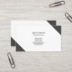 Um cartão de visita simples, limpo e minimalista com dois cantos pretos e informações de contato de cheio fáceis de ler. Há um texto adicional disponível no verso. A preto e branco, esses cartões de visitas modernos poderiam ser usados para qualquer tipo de negócio como freelance, corporação, branding, consultoria etc.