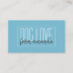 Passeador de cão branco, sentado no animal de estimação e cartão de visita de embarque de cão com uma fonte alta e peculiar contrastada com uma letra manuscrita contra um fundo verde azul rico. O reverso da carta tem uma garota caprichosa caminhando com um cachorro em um padrão repetido. Adicione o seu próprio nome comercial. Se seu nome for maior, torne o tipo menor para ajustado no retângulo. Você pode simplesmente manter o "amor do cachorro" e adicionar seu nome abaixo.