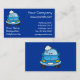 Caricatura azul sorridente com bolhas de sabão. Cor de fundo personalizada. Texto personalizado.