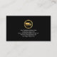 No verso, num cobrir preto, o logótipo dourado está no topo, seguido do seu nome prestigiado, dos seus contatos e de uma opção de slogan para divulgar os seus serviços.