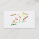 A lápis infantil simples desenho do estilo do pastel de uma casa, do jardim com flores e do sol feliz. Imagem disponível em vários presentes e produtos. Personalize e escolha sua própria cor do fundo ou adicione o texto se você precisa. Cartões de visitas feitos sob encomenda.