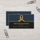 Um filme de chef de ouro falso delimita a camada azul-escura superior contra uma peça preta abaixo. É aqui que você encontra seu nome comercial, cargo e contatos. As cartas aqui estão em ouro falso.