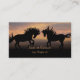Um belo par de cavalos selvagens dançando juntos seus homens e rabos soprando no vento. Estes cavalos fríésios têm fezes peludas de cabelos longos. O cenário de fundo é uma paisagem colina vista durante um pôr do sol brilhante do ouro. Design de cartão de visita profissional com um tema equestre/cavalo.