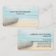 Cartões de visitas com uma bela imagem rústica. Cores sutis de azul claro, marrom arenoso e branco suave. Uma cena de praia com um barco na praia com uma rede de pesca pendurada ao lado. Um olhar elegante.