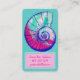 Uma casca colorida do mar está na frente deste cartão. A concha bonito é uma concha tipo botão (umbônio), que tem uma forma espiral agradável. Os detalhes da concha são um azul de cobalto brilhante. Dentro na casca há turquesas leves, magenta e geada leve rosa. Suas informações, que podem incluir seu nome, número de telefone e endereço de e-mail, são enquadradas em um modelo cor-de-rosa de duas tonalidades. Há também um modelo na parte traseira para obter informações adicionais ou ele é facilmente removido.