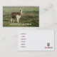 Seu cartão de visita apresenta uma alpaca marrom e branca na frente e, no verso, um lugar para o nome da sua empresa, endereço, número de telefone, endereço de site e endereço de e-mail com o rosto de uma alpaca branca e preta e o texto, "Eu coração alpacas"