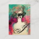 Senhora elegante e caprichosa com uma sofisticada máscara de penas veneana em cor rosa vibrante, verde, fucsia, preto, branco, inspirada na Comédia de Arte (Commedia dell' Arte ) e no Carnaval de Veneza , pintura aquosa com folha de ouro e prata .