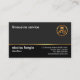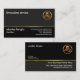 No verso, utiliza-se um tema design semelhante. No canto superior direito está o familiar logotipo dourado falso. Seu nome prestigiado está na extremidade oposta da placa com uma opção de slogan logo abaixo. Em uma grande coluna de cinza com a linha de demarcação de ouro, coloque o nome da empresa e os detalhes de contato.