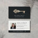 Cartões de visitas elegantes para agentes imobiliários ou realtors apresentam uma ilustração de chave de esqueleto vintage em folha de ouro falso com seu nome ou nome comercial por baixo. Adicione seus detalhes de contato do cheio ao reverso em preto suave em um fundo branco, juntamente com uma foto.