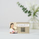 Uma sutil brilho dourado dispara o fundo deste design de cartão de visita com um espaço reservado para fotos à esquerda com o nome do modelo e o código QR à direita. O verso inclui um design coordenado e cores com campos de texto para o nome e os detalhes da empresa. Mantenha ou substitua a foto do espaço reservado pela sua fotografia de formato vertical e substitua o código QR pelo seu. Preencha os campos de modelo ou clique em personalizar para selecionar um estilo de fonte, tamanho e cor desejados.A foto do marcador de posição é cortesia em pexels.com.