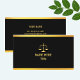Um elegante olhar metálico de ouro com marca moderna e Cartões de visitas de Direito de fundo preto. Todos os textos prontos para serem personalizados.