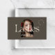 Elevem seu salão de lash ou marca de beleza com nosso design de cartão de visita chic. Apresentando uma fonte de serifa editorial de na moda e alta moda que soletra 'Lashes', sobreposta em uma foto arquivada e personalizável, esta design é uma declaração impressionante que certamente atrai a atenção. Personalize com seu nome ou marca na frente e mostre suas informações de contato e detalhes de mídia social na parte traseira. É mais do que uma carta — é uma introdução glamourosa à sua beleza proeza. Entre em contato com o designer para obter opções de texto gráfico personalizado. Design © 1201AM Design Studio | www.1201am.com