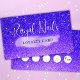 Belo e atraente Glitter Chic SPA Nail Makeup Lashes O Cartão de Lealdade é projetado para ajudar sua empresa a se destacar! Apresenta um fundo brilhante em tons de texto roxo vibrante e personalizável. Este cartão de fidelidade profissional para as unhas é perfeito para salão de unhas, tecnologia de unhas, maquiador, spa, chicotadas, salão de cabelo, lash artista e muito mais!