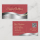 Mostre elegância e inovação com este belo modelo de cartão de negócios. A design apresenta uma decoração prateada ondulada e brilhante com linha de decor de creme leve, sobre um fundo vermelho comum indiano. Personalize facilmente este cartão de visita para a sua marca, as suas iniciais e o seu código qr. Tudo que você vê é uma folha de prata falsa, mas uma design impressão de qualidade. ♡ desejar-lhe muito prazer com este ponto e boa sorte para o seu trabalho. ♡ pelo SEU FAVORITO - designs :-) Fornecimentos comerciais modernos e profissionais. ♡ www.zazzle.com/store/your_favorite ♡ www.zazzle.com/store/favorite_markeplies ♡
